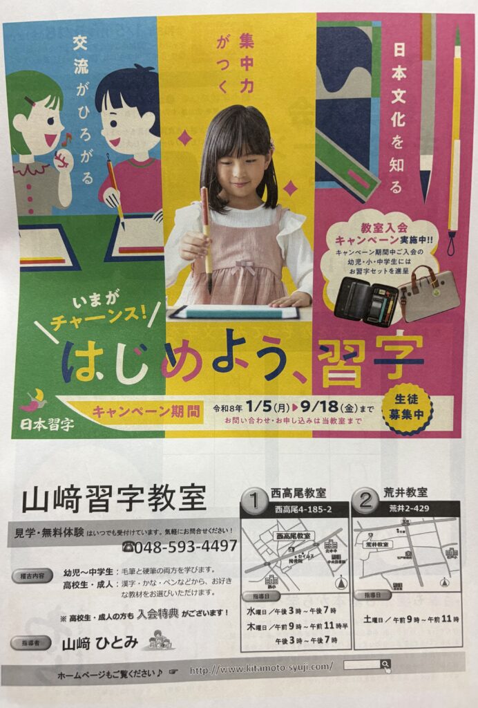 毛筆・硬筆ともに無料体験教室実施中ですので、
